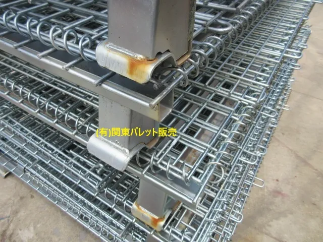 程度程度AA 1回使用の中古メッシュパレットです。一部小サビ曲り、メッキ艶落ち程度です。目立つ破損ありません。